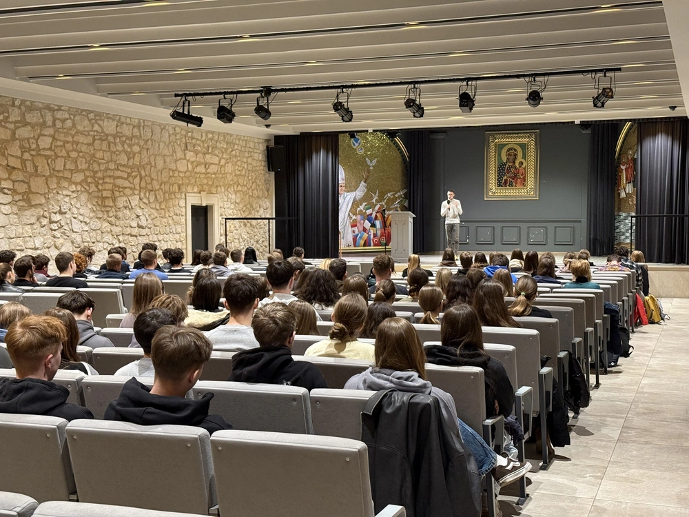 Około 200 maturzystów uczestniczyło w pielgrzymce, która przebiegała pod hasłem: „Pielgrzymi nadziei”. Taki też temat miała konferencja, którą w Sali Papieskiej wygłosił Tomasz Wiecha z Diecezjalnego Duszpasterstwa Młodzieży „Pełni Życia”.