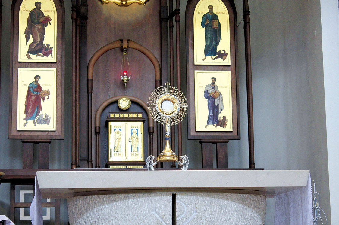 Wierni kolejnych parafii modlą się przed Najświętszym Sakramentem wystawionym w monstrancji, która jest darem diecezjan po zakończonym Kongresie Eucharystycznym.