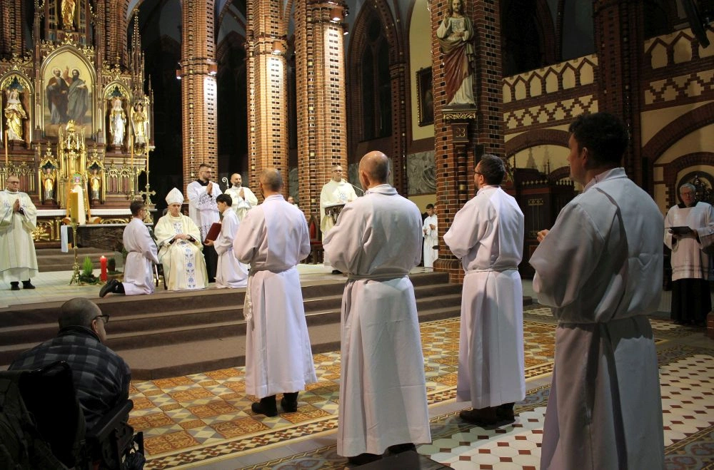 Gliwice, 7.12.2024 r. W wigilię uroczystości Niepokalanego Poczęcia NMP w gliwickiej katedrze bp Andrzej Iwanecki ustanowił 23 nowych nadzwyczajnych szafarzy Komunii św.