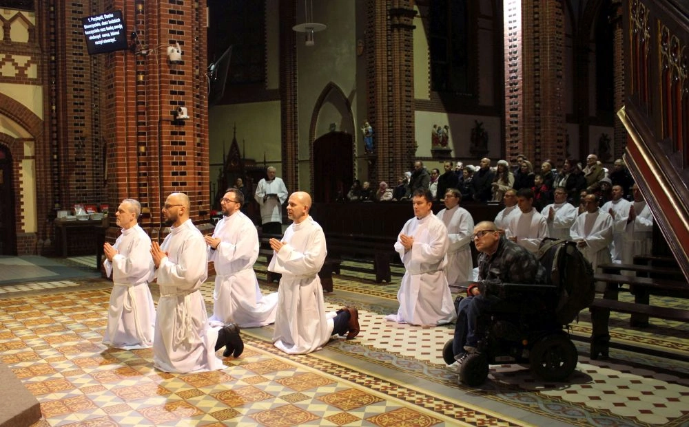 Gliwice, 7.12.2024 r. W wigilię uroczystości Niepokalanego Poczęcia NMP w gliwickiej katedrze bp Andrzej Iwanecki ustanowił 23 nowych nadzwyczajnych szafarzy Komunii św.
