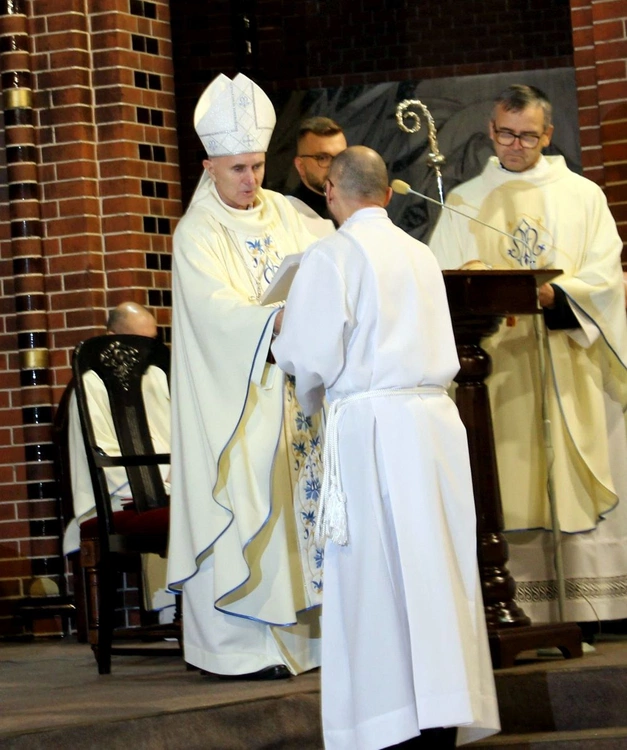 Gliwice, 7.12.2024 r. W wigilię uroczystości Niepokalanego Poczęcia NMP w gliwickiej katedrze bp Andrzej Iwanecki ustanowił 23 nowych nadzwyczajnych szafarzy Komunii św.