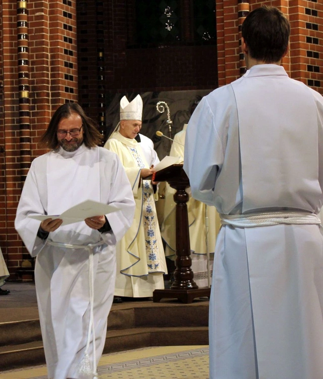 Gliwice, 7.12.2024 r. W wigilię uroczystości Niepokalanego Poczęcia NMP w gliwickiej katedrze bp Andrzej Iwanecki ustanowił 23 nowych nadzwyczajnych szafarzy Komunii św.