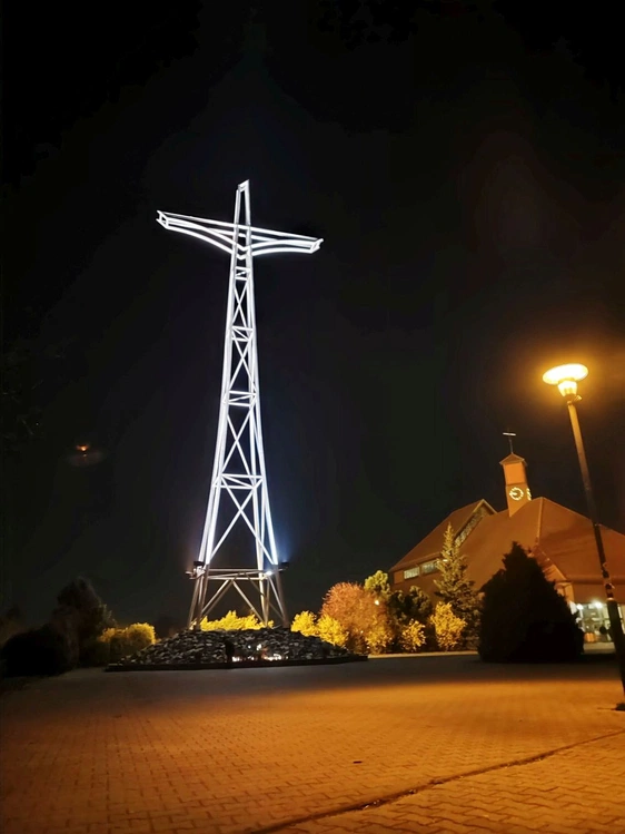 Zabrze. 2.04.2025. W 20. rocznicę śmierci Jana Pawła II odbyła się modlitwa przy Krzyżu Papieskim, przeniesionym z gliwickiego lotniska, gdzie 17 czerwca 1999 roku miało miejsce spotkanie z papieżem.