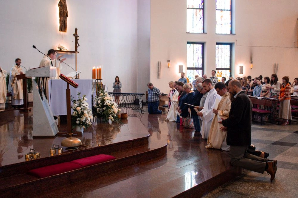 Tarnowskie Góry-Lasowice. 14.06.2025. Blisko 200 wzięło udział w rozesłaniu przed rekolekcjami Ruchu Światło-Życie diecezji gliwickiej, które odbyło się w parafii św. Katarzyny Aleksandryjskiej w Tarnowskich Górach-Lasowicach.
