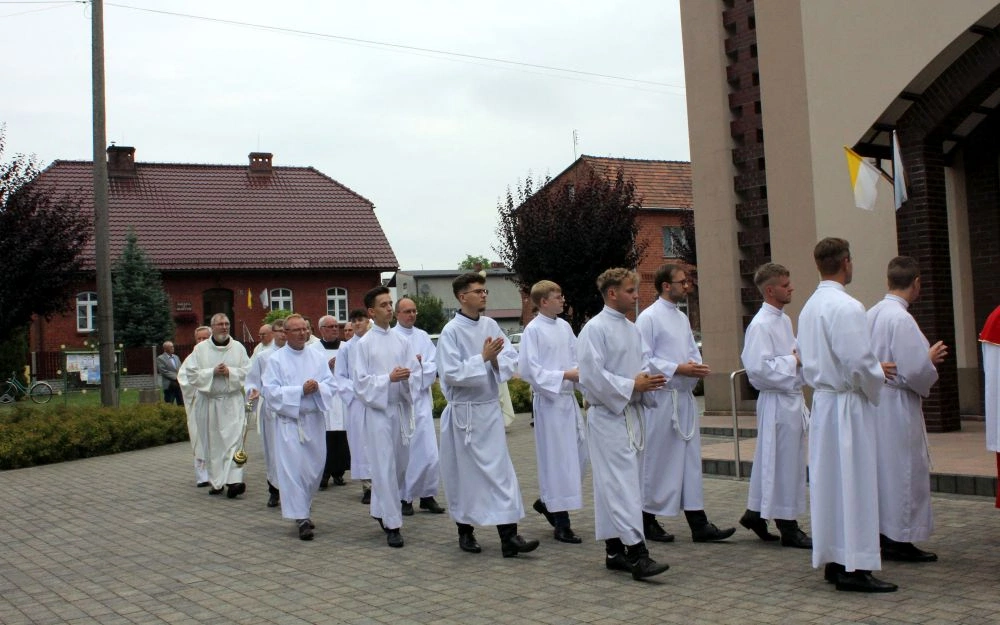 Olszyna. 27.07.2025. W ramach obchodów jubileuszu 100-lecia parafii Wniebowzięcia NMP Mszy św. przewodniczył biskup gliwicki Sławomir Oder. Na uroczystości obecny był również bp Andrzej Iwanecki. Po południu zaplanowany został festyn parafialny.