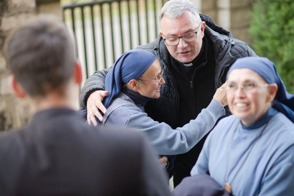 Miasteczko Śląskie. 27.09.2025. Jubileuszowa pielgrzymka kapłanów rozpoczęła się modlitwą przy grobie ks. Teodora Christopha. Następnie bp Sławomir Oder przewodniczył Mszy św. w kościele Wniebowzięcia NMP. Konferencję formacyjną wygłosił ks. dr hab. Janusz Wilk, a świadectwem swojego życia podzieliły się Małe Siostry Baranka z fraterni w Choroniu.