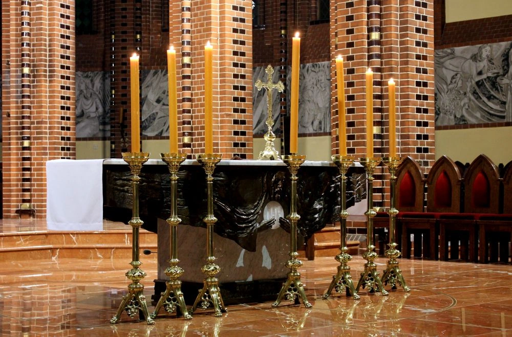 Gliwice. 8.12.2025. W uroczystość Niepokalanego Poczęcia NMP bp Sławomir Oder ustanowił 37 nowych nadzwyczajnych szafarzy Komunii świętej podczas wieczornej Mszy św. w gliwickiej katedrze.